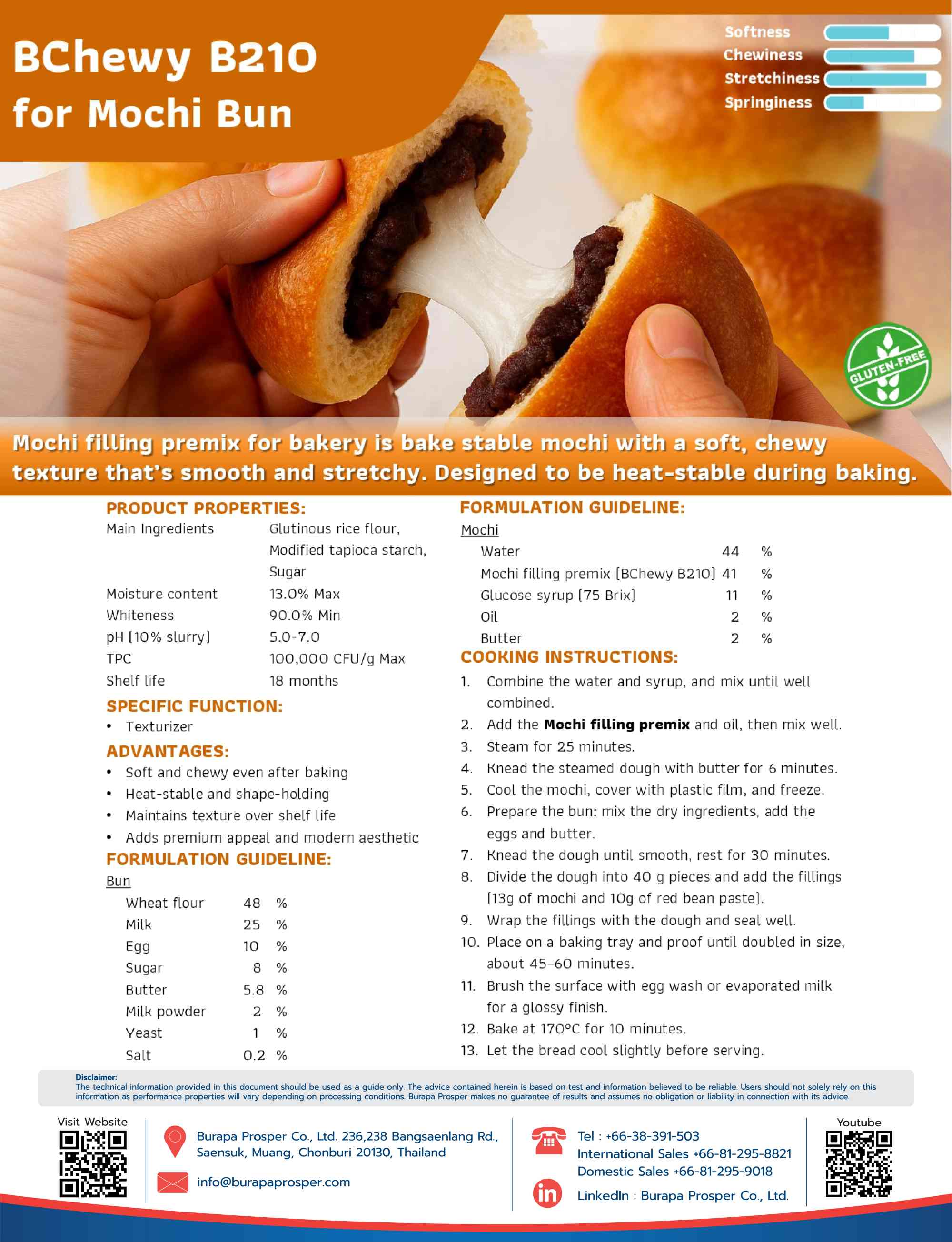 As experts in innovative bakery solutions, we present our specially developed Mochi Filling Premix, engineered to deliver an exceptionally elastic, soft, and long-lasting texture. This premix is the ideal choice for enhancing buns, tarts, and pastries with an authentic mochi experience. A key technical advantage is its superior stability after baking; the filling maintains its signature chewiness without hardening or suffering from syneresis, ensuring a consistent and premium mouthfeel in every bite, even after heat exposure. Beyond enhancing the sensory experience with its playful and chewy texture, our Mochi Filling Premix serves as a strategic tool for cost control. It allows manufacturers to partially replace or supplement high-cost fillings—such as premium fruit or bean pastes—without compromising the product's appeal. Perfectly aligned with the booming global demand for innovative textures in Asia, the USA, and Europe, our premix enables bakery businesses and industrial producers to stay ahead of market trends, delivering unique and sophisticated products that resonate with modern consumers.