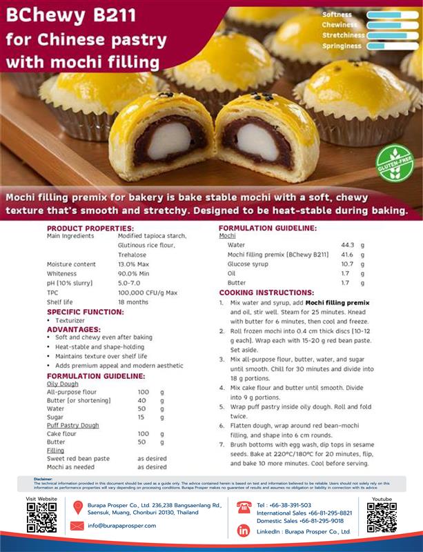 Premium Mochi Filling Premix Heat-Stable and Elastic Texture for Professional Bakery. Specially developed mochi filling premix for buns, tarts, and pastries. Maintains long-lasting chewiness after baking. An innovative cost-control solution aligned with global bakery trends.